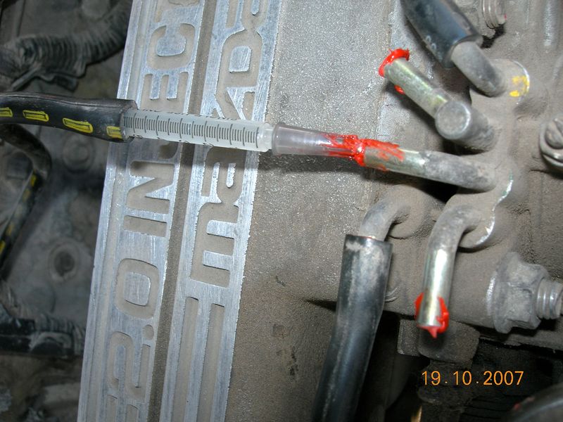 Иглу взял от 10-кубового шприца, вода пошла довольно весело. Первое ощущение - дрыгатель заработал жестче, хотя на москвиче первым ощущением было наоборот - мягкость. Конечно, хотелось бы придумать жиклер, но пока так попробую....