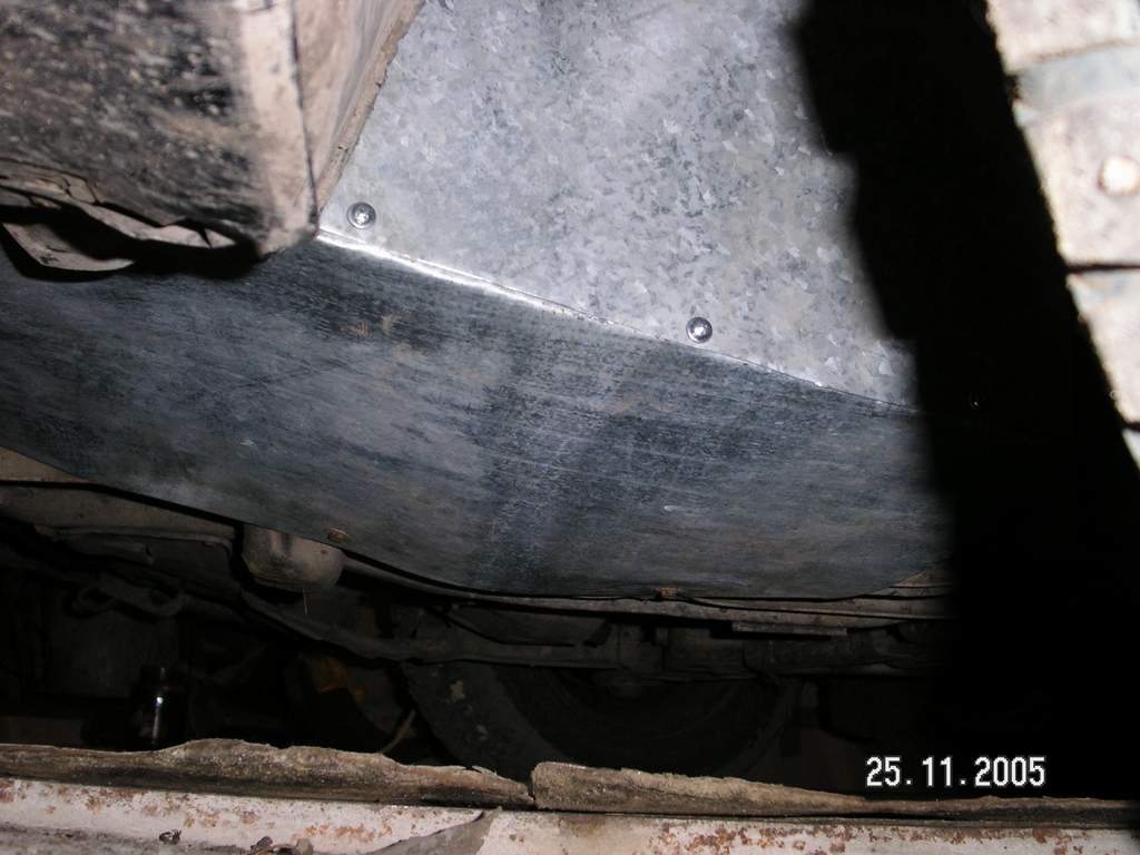 Писал как-то: по остаткам разломанной защиты скроил защиту из оцинкованного железа. На каждую сторону из двух частей: вертикальную и горизонтальную. Сцеплял между собой саморезами с пластинками, которыми крепят подкрылки. К кузову - в штатные места.