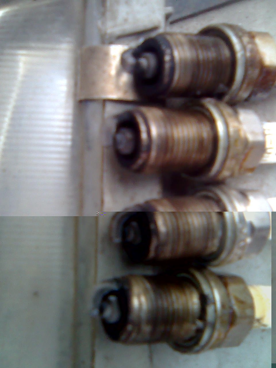 Фото № 8 последнее в этом обзоре. Электрод свечи оброс зольными отложениями, цвет не играет решающей роли, он лишь свидетельствует о работе топливной системы. Причина этого нароста сгорание масла вследствие выработки или залегания маслосъемных поршневых колец. У двигателя повышенный расход масла, при перегазовках из выхлопной трубы сильное, синие дымление, запах выхлопа похож на мотоциклетный.