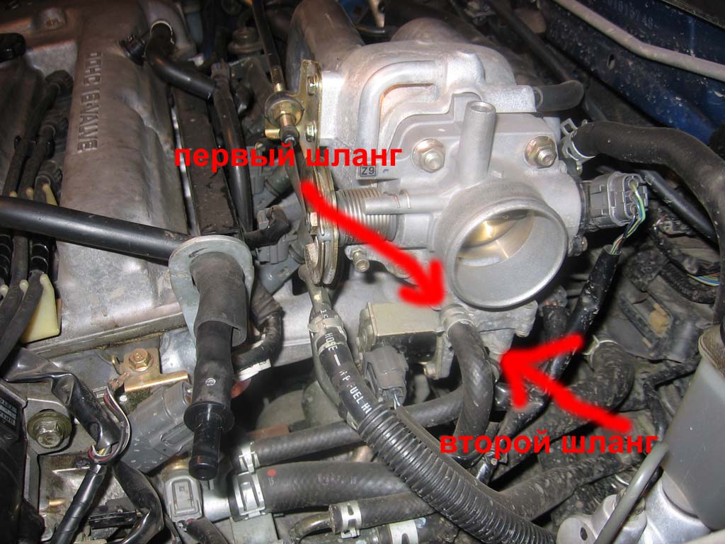 Если не ошибся, ты не снимал с корпуса заслонки блок, в котором стоит регулятор ХХ (тот самый, на котором моторчик и подходят те самые 2 шланга)?