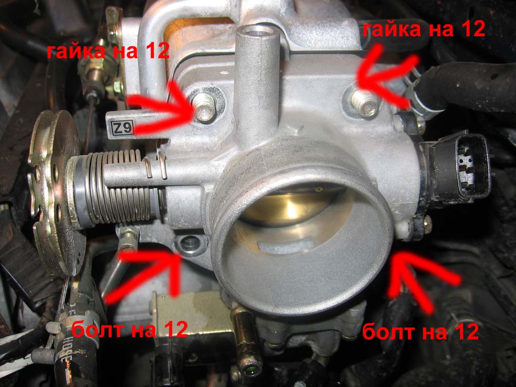 7.берем головку на 12 и вороток,отварачиваем 2 гайки и два болта,все дросельная заслонка свободна.(фото6)