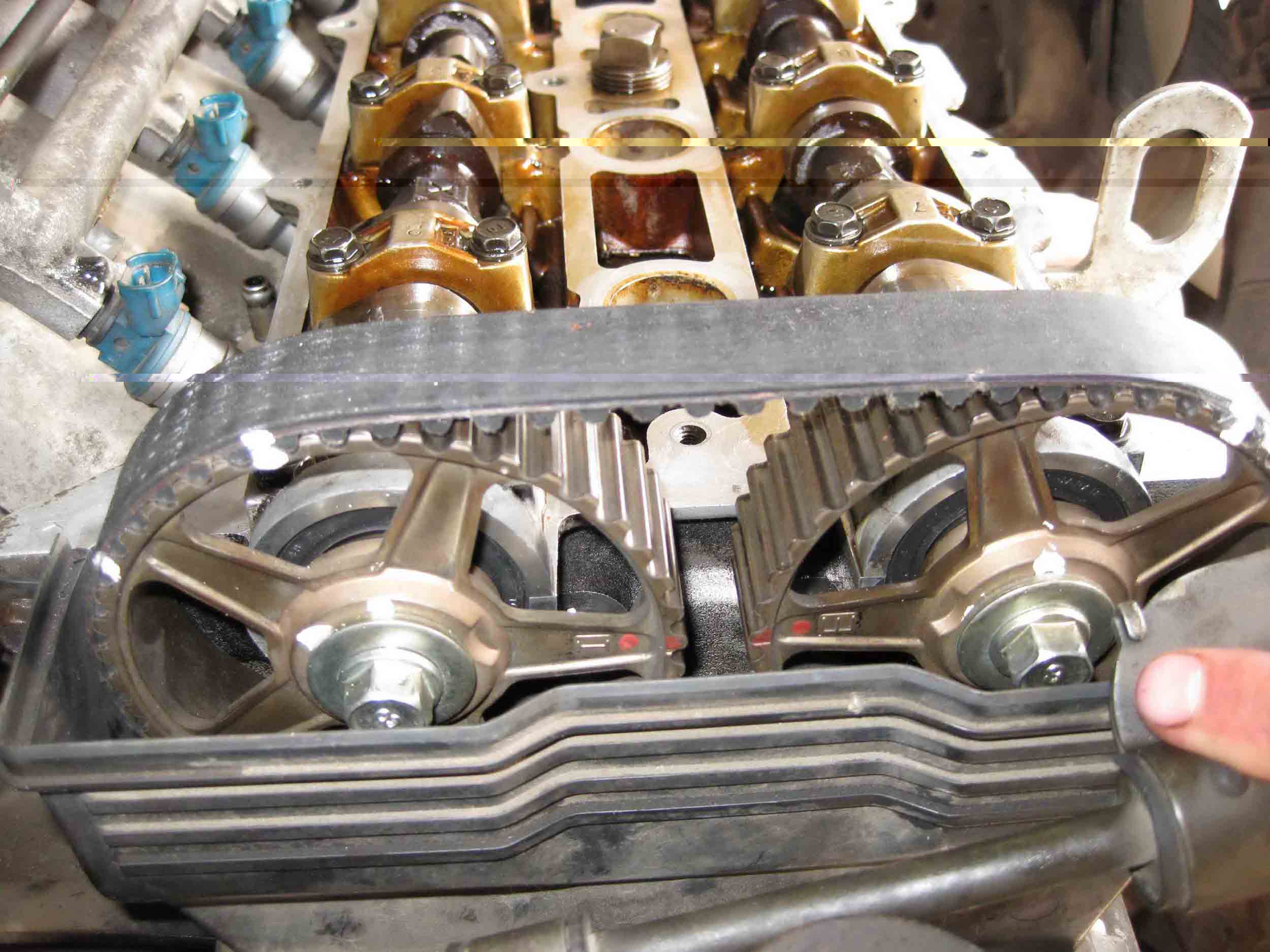 cнизу одну метку, на одном распредвале одну и на втором две – так точно не спутаешь (если меняешь ремень-это все переносишь на новый – запихиваешь его потом не думая, но все равно метки лучше сверить по итогу)