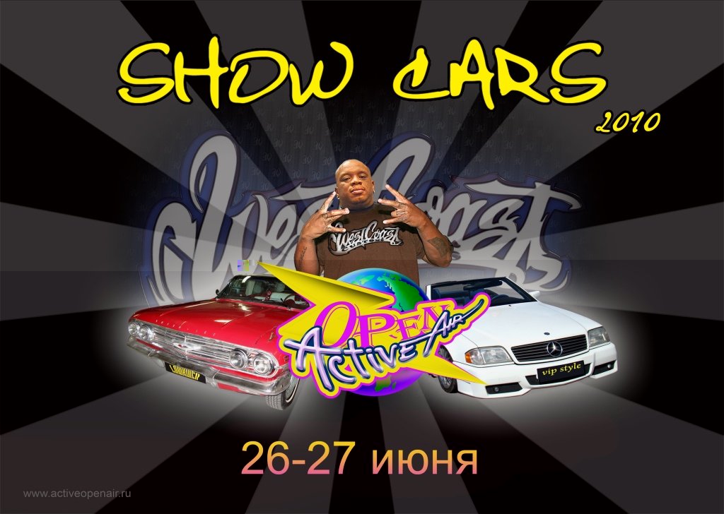 «Active Open Air Show Cars 2010» с участием представителя американской компании West Coast Customs – Биг Дена (Big Dane) – участника проектов «Тачку на прокачку»(MTV), «Крутой тюнинг»(DISCOVERY). Также приглашены к участию автомобильные клубы Москвы и других городов России, Белоруссии, Финляндии и частные лица с наиболее интересными экспонатами.