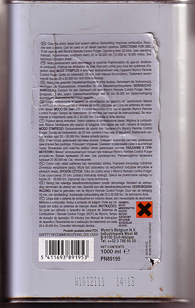 В качестве чистящей жидкости применяется WYNN'S "Injection System Purge" PN 76603, "Diesel System Purge" PN 89103.