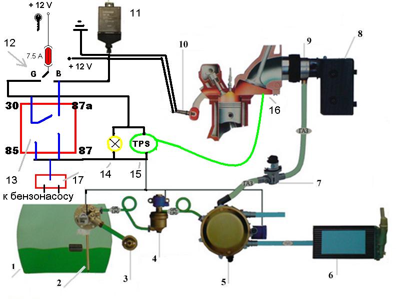 -возле мозгов перемкнул провода, которые идут на етот самый датчик температуры. Машина с легкостью перешла на ГАЗ. Я был просто счастлив. И так вроде как решение найдено. ПРовода сомкнули - тем самым выкинули датчик из цепи!