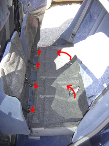 Первым делом надо снять подушки задних сидений, которые, к моему сожалению, снимаются дольше чем бензонасос... :-(