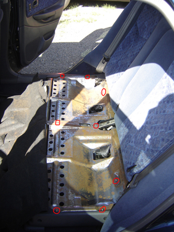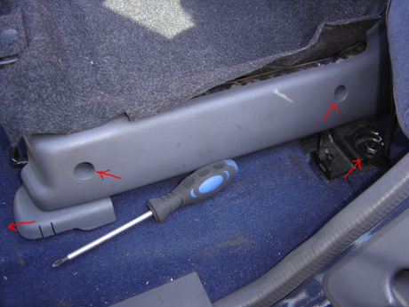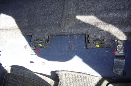 Если откинуть спинку сидения назад, то доступ к болтам появляется из богажника