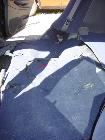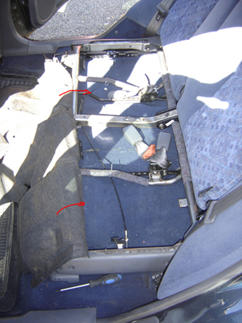 Ну, с сидением закончено. Далее его вытаскиваем (оно неудобное и тяжелое). Видим прорезь в ковре.