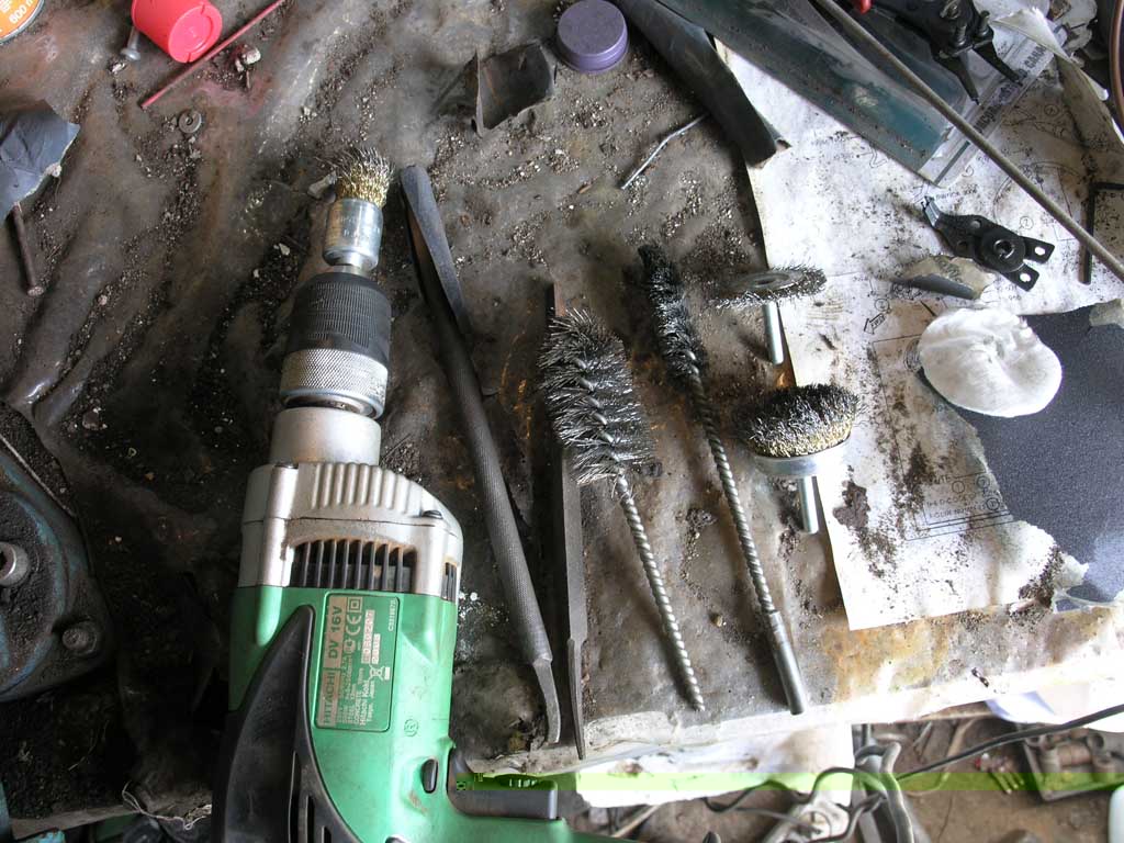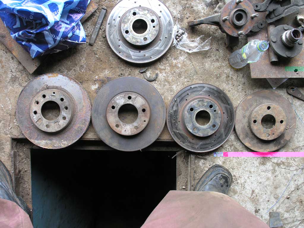 В процессе прокачки обнаружил предательское мокрое пятно у заднего левого колеса. Внимательный осмотр показал, что трубки, мягко говоря, банально сгнили. Пришлось машину оставить в гараже и переться на рынок, который в городе, который в 40 км от гаража. В-общем, неприятно. На рынке куплены 2 куска трубок по 3 метра диаметром 5 мм, 4 штуцера и 2 соединителя тормозных трубок, общей стоимостью около 1000 рублей. Плюс решил разориться на развальцеватель, т.к. медь развальцевать на конус подручными средствами еще можно попробовать, но вот сталь, лучше и не пытаться. Я представил себе картину процесса развальцовки в яме, в ограниченном пространстве, вздрогнул и задушил жабу. Со всем барахлом приехал в гараж, задрал жопу машины, попытался оценить масштаб бедствия, в-принципе, если скинуть бензобак, то там довольно просто все и доступно, но посмотрел на часы, плюнул и решил в тот день не связываться. В очередной раз прокачал тормоза по кругу, поехал домой на машине. Тормоза быстро насосались воздуха и ездить стало несколько ссыкотно. Поэтому машина пробыла в городе в режиме ограниченной функциональности, ползком-ползком, низенько-низенько. И на следующих выходных было решено добить проблему.