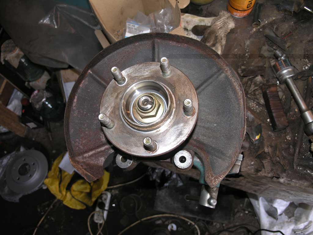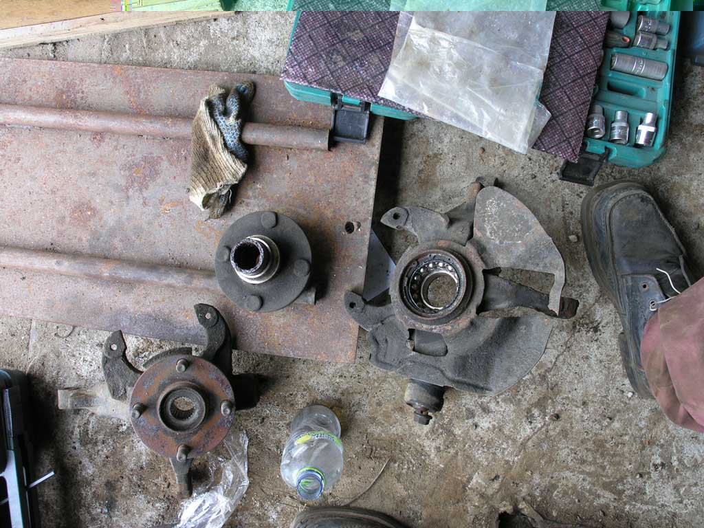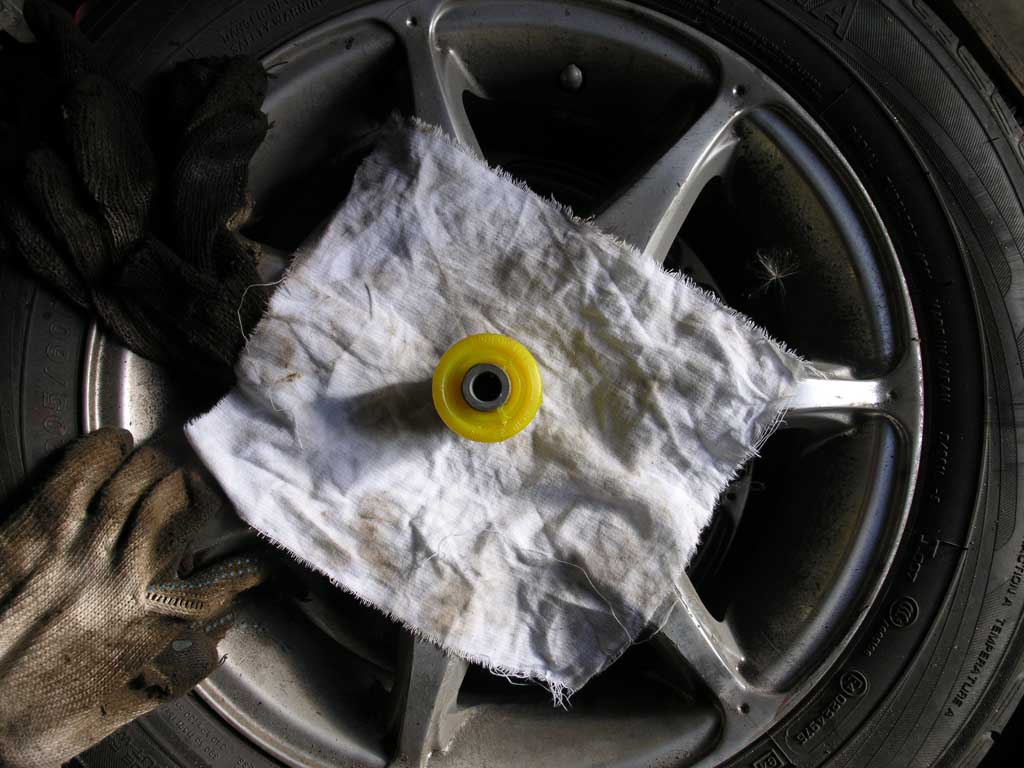 При натягивании колес на жопу выяснилось, шо они не лезут - тупо упираются в стойку. Не хватало ~8 - 10 мм, что очень нехорошее число, т.к. высота буртика ступицы 9мм. Делать нечего, временно, для протяжки подвески, на жопу были установлены зимние колеса от той же шестерки, 205/60R15 6J ET52.5. Они встали без проблем. Замерил ступицу, заказал проставки толщиной 12 мм, с буртиком, и шпильки, длинной 45мм. Но, как обычно не учел толщину защитного колпачка ступицы, поэтому дополнительно пришлось прикупить за 300 р билтемовские универсальные проставки толщиной 3 мм. Процесс разборки колеса, ступицы, переустановку шпилек описывать не буду, он банален, хотя и трудоемок. Кувалда решает, хотя пресс был бы лучше.