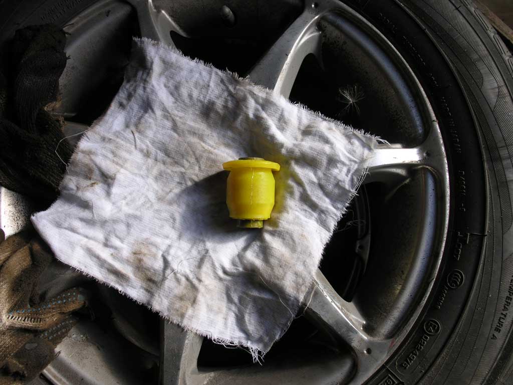 Для прокачки тормозов сделал очередную приблуду, т.к. делал все один. Купил крышку бачка ГТЦ, имплантировал штуцер от колеса и соединил с нипелем накаченного колеса. 2 атмосферы весьма не плохо давят и выгоняют тормозуху. Прокачивал по книжке, крест-накрест, начиная с заднего левого колеса.