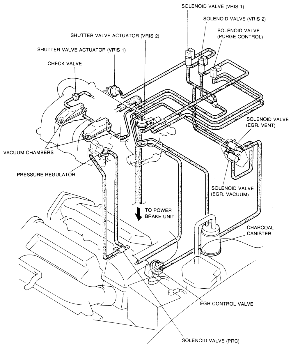 Далее, никаких трех трубок, вроде бы насколько помню, быть не должно - должна быть одна единственная, уходящая на клапаны EGR-вакуума и EGR-вентиляции.