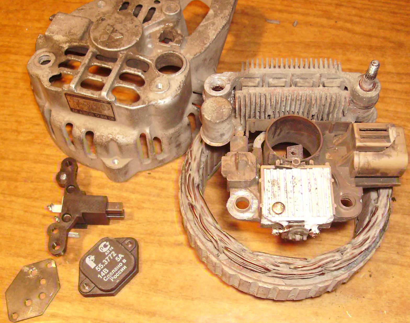 Ехал на работу, неожиданно пропала зарядка, ладно думаю доеду до работы - посмотрю, через пару минут обратил внимание что стрелка температуры тронулась с середины, ну думаю ремень порвался, остановил машину, открыл капот, ремень на месте. Заглушил машину, минут через 5 опять завел, зарядка идет, температура в норме, поехал дальше и минут через 5 та же фигня. До работы все таки доехал, но машина грелась когда не было зарядки. Ну думаю подшипник кончился, была у меня такая беда на 1.8, пропала зарядка и машина грелась из-за того что ремень проскальзывал из-за подшипника и помпа видимо плохо крутилась. Решил пойти коротким путем, и просто перекинуть генератор с моей разобранной GE седан с FP. Когда скинул ремень, понял что ролики на генах отличаются, у V6 он 4 ручейковый, у FP 3-х, ладно думаю поменяю их местами. Сняли у друга в гараже гену, открутили ролики на обоих генераторах, переставили местами, тут меня ждало разочарование, ролик от 1.8 при перестановке на 2.5 отказывался крутиться, посадочные места на генах разные, и как потом выяснилось "уши" под длинный болт тоже отличаются. Короче не судьба, разобрали генератор от V6, сняли маленький подшипник,чтобы по нему сразу подобрать другой, а вот большой подшипник снимать не стал, так как у меня валялся старый от 1.8 и взял с собой его (а зря!) щетки были еще живые, и я решил их не менять (а напрасно!) отправился на поиски новых подшипников, облазил полгорода нашел только большой, за 860 р. точно такой же как и родной от NTN. Но во первых цена не устраивала во вторых маленького все равно не было. Поехал в автомагаз заказывать сразу оба. На след.день позвонили из магаза и сказали что подшипники уже в наличии, были оказывается на каком то складе, цена 820 р. за оба. Приехал за ними, и выяснилось что маленький подходит а большой не такой, как выяснилось передние подшипники генератора от 2.5 и 1.8-2.0 разные, от 2.5 он больше по диаметру!! В итоге так и пришлось ехать и покупать тот подшипник за 860 р! Хорошо еще в автомагазе согласились забрать подшипник который не подошел. На след.день собрали гену и поставили его на место. Зарядка была, я уже успел обрадоваться, поехал домой, буквально минут через 5 зарядка пропала, ну короче все как и было. Вернулся обратно в гараж к другу, тогда уж мы поняли что беда с реле регулятором, ехать и заказывать новое было уже неохота и поэтому было решено извлечь его из генератора от 1.8, благо там я его менял не так давно, в итоге сначало разобрали гену от 1.8, выпаяли реле, щетки там износиться еще не успели, сняли опять гену от 2.5, выпаяли старое реле и впаяли туда новое-старое реле