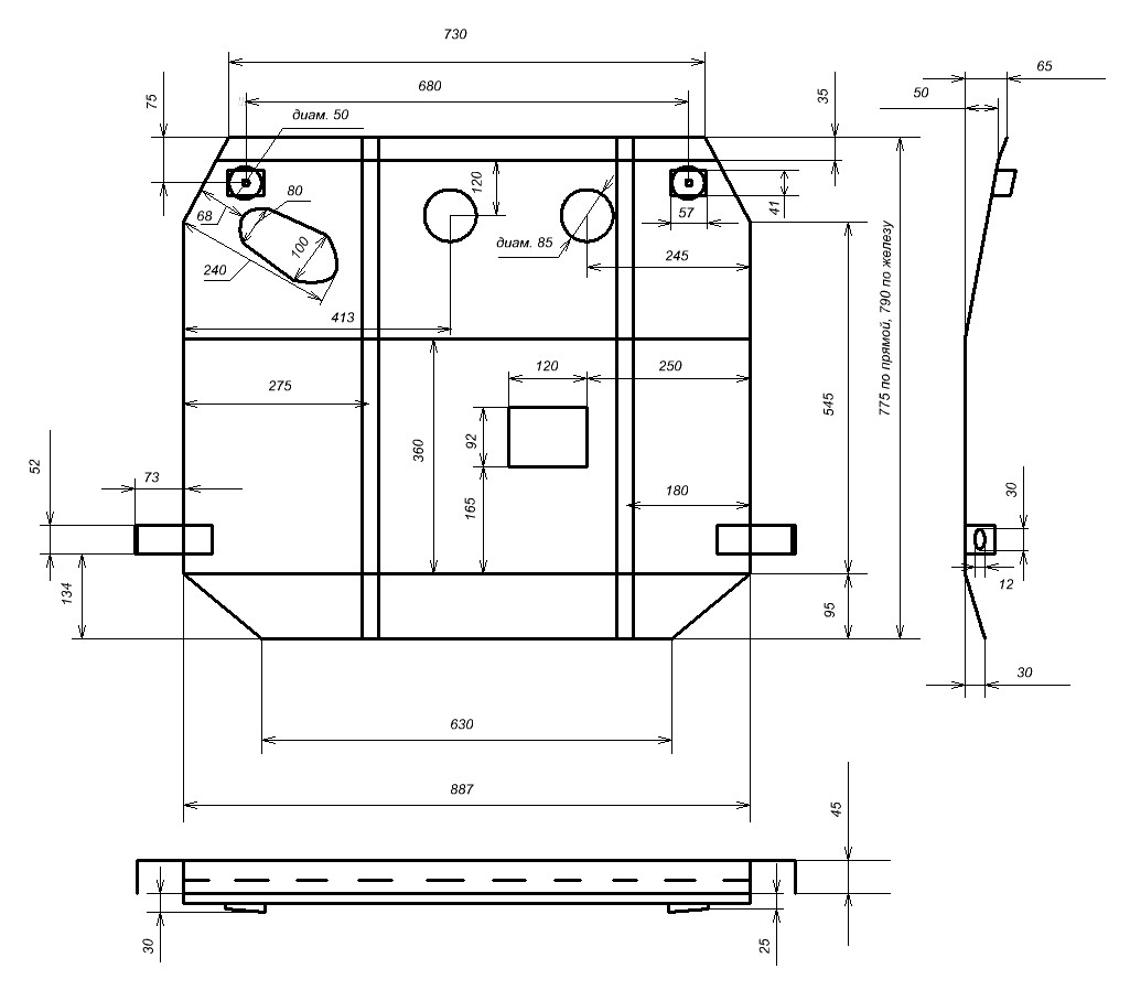 Скоро зима. :Yahoo!: В выходные сделал защиту картера из 3 мм листа, надежная вещь получилась. Ниже чертеж, начерченный после того как сделал :)