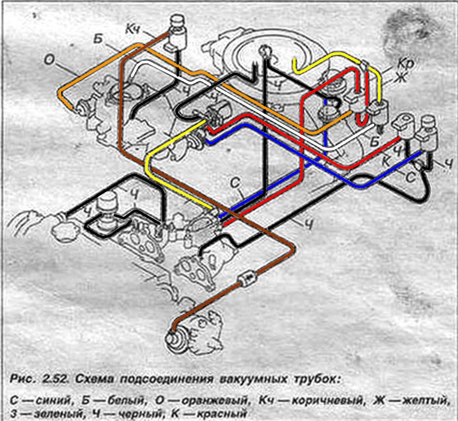 самое интересное, схемки у нас одинаковые, но на моей одна ошибочка, неправильно указано направление работы клапана на вакуум-корректоре трамблера. :D