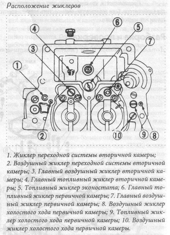 а у меня все по другому. на первичной камере один канал заглушен, а на канале с клапаном стоит жиклер 200, под заглушкой глубоко в колодце стоит длинный жиклер с маркировкой 44.